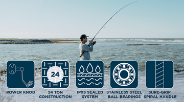 Toadfish designers built this combo from the blank up with a custom reel seat, salt tough components, and dialed-in actions for surf casting lures or throwing bait. Reel features a sealed carbon drag and sealed bearings for superior saltwater corrosion resistance. Rod features tangle free guides allowing for longer casts, and custom blank tapers to quickly bury a hook, but soft enough to land a variety of species. Built salt-tough to withstand harsh conditions of surf environments.